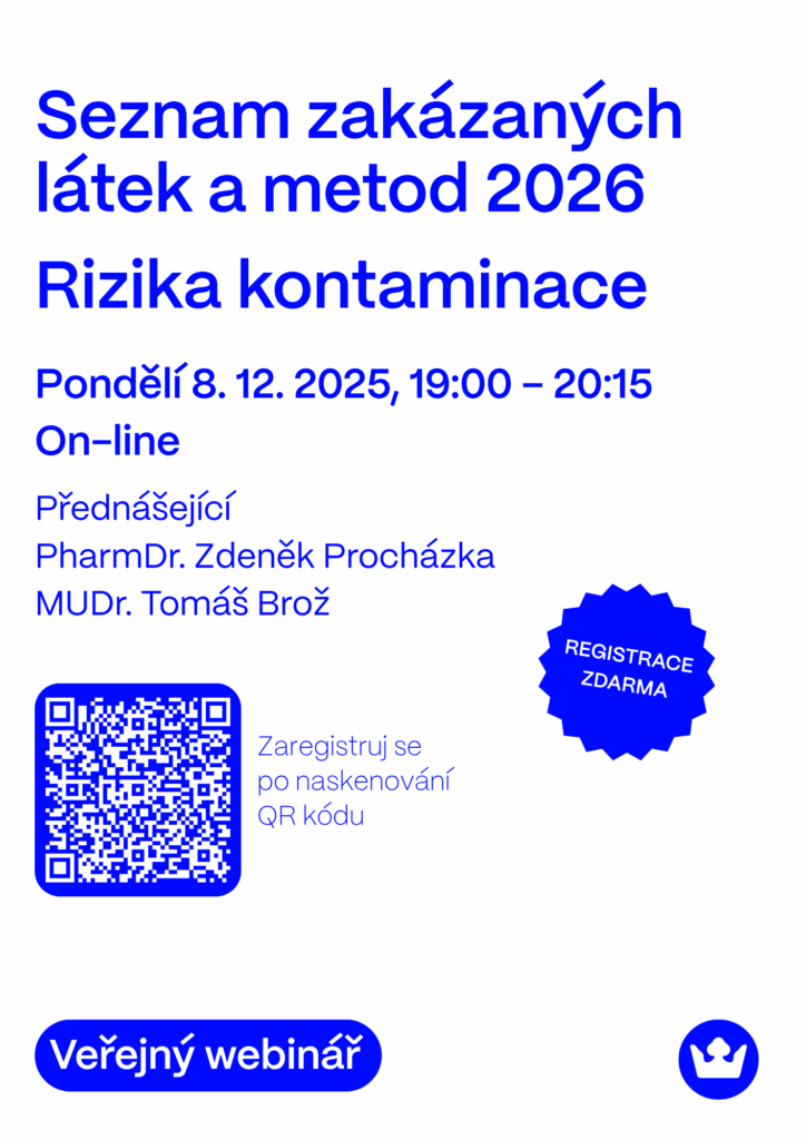 Zveme vás na další online antidopingový seminář, tentokrát na téma rizikových látek a kontaminace. V pondělí 8.12. od 19 do 20.15. Registrace je zdarma. Více informací v letáku.